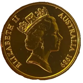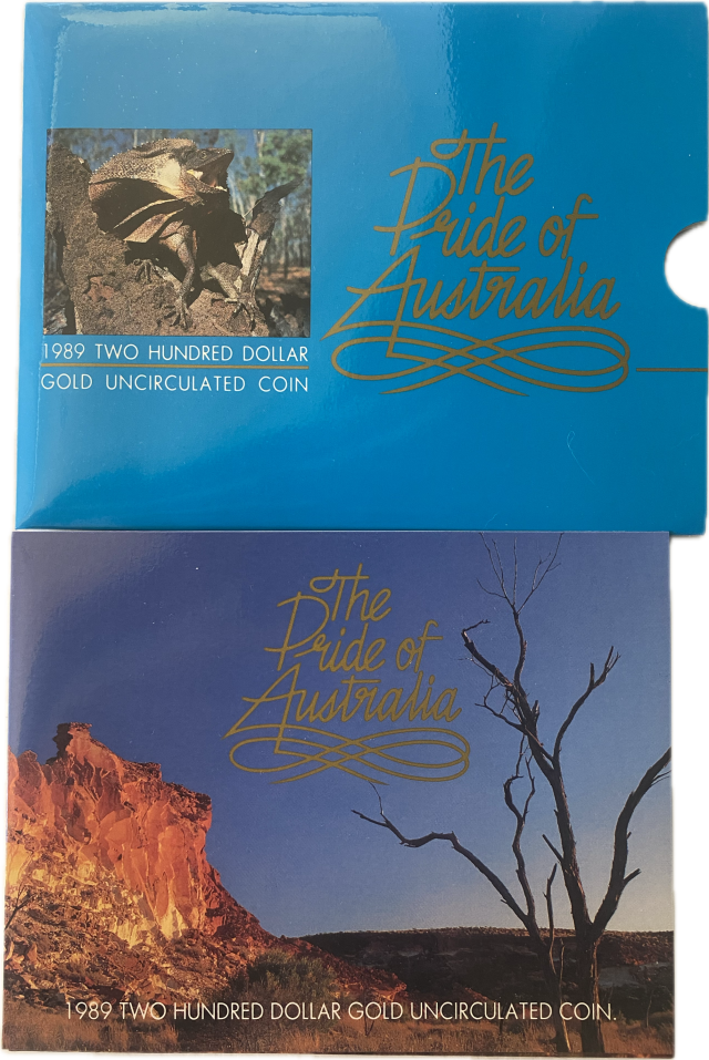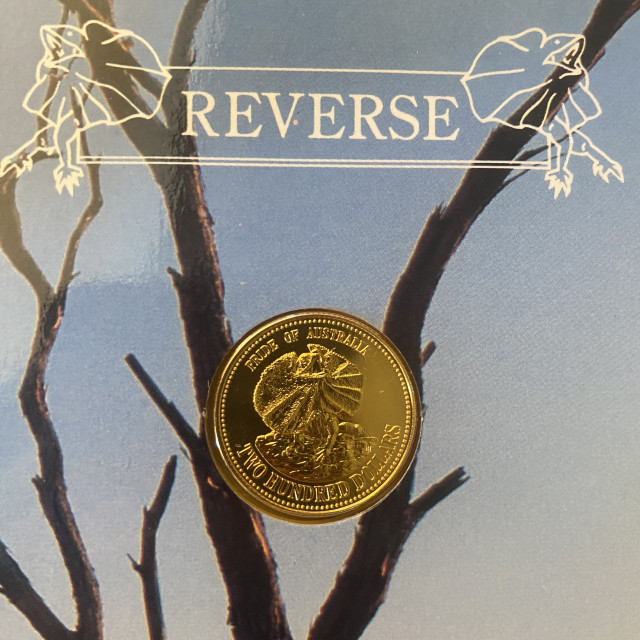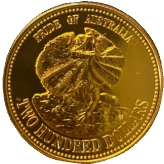 Hahne’s reverse side design for the 1989 $200 gold coin 10g. The obverse features the traditional effigy of Her Majesty, Queen Elizabeth II.